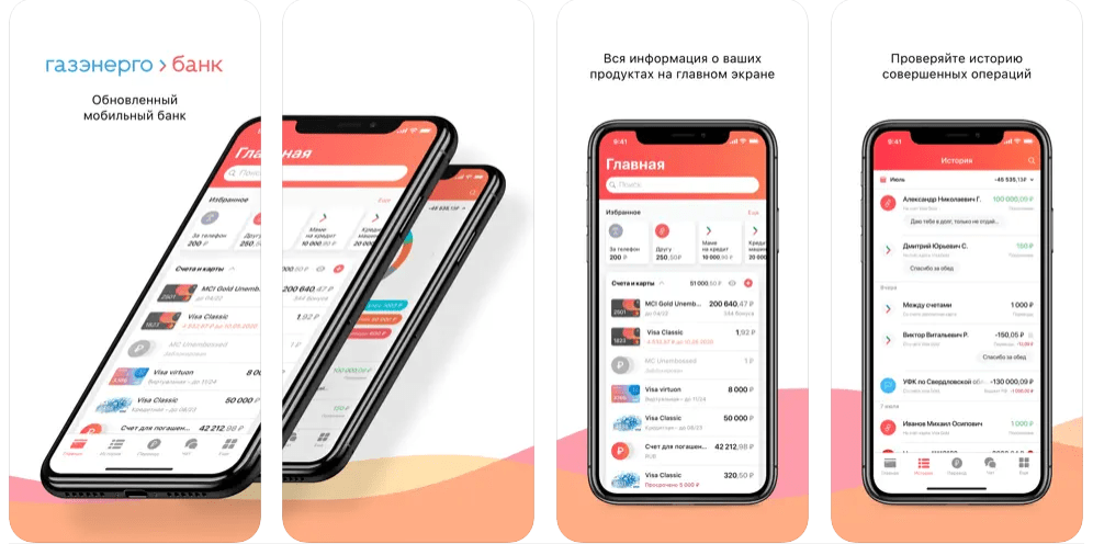 Мобильное приложение Газэнергобанк устанавливается на телефон или планшет на платформах Android и iOS. Подключение и использование ГЭБ Online бесплатно. Скачать установочный файл можно на App Store и Google Play, а также через ссылку на официальном сайте кредитора. Сервис помогает получать подробную информацию обо всех счетах, отправлять и получать деньги. Среди других опций приложения: