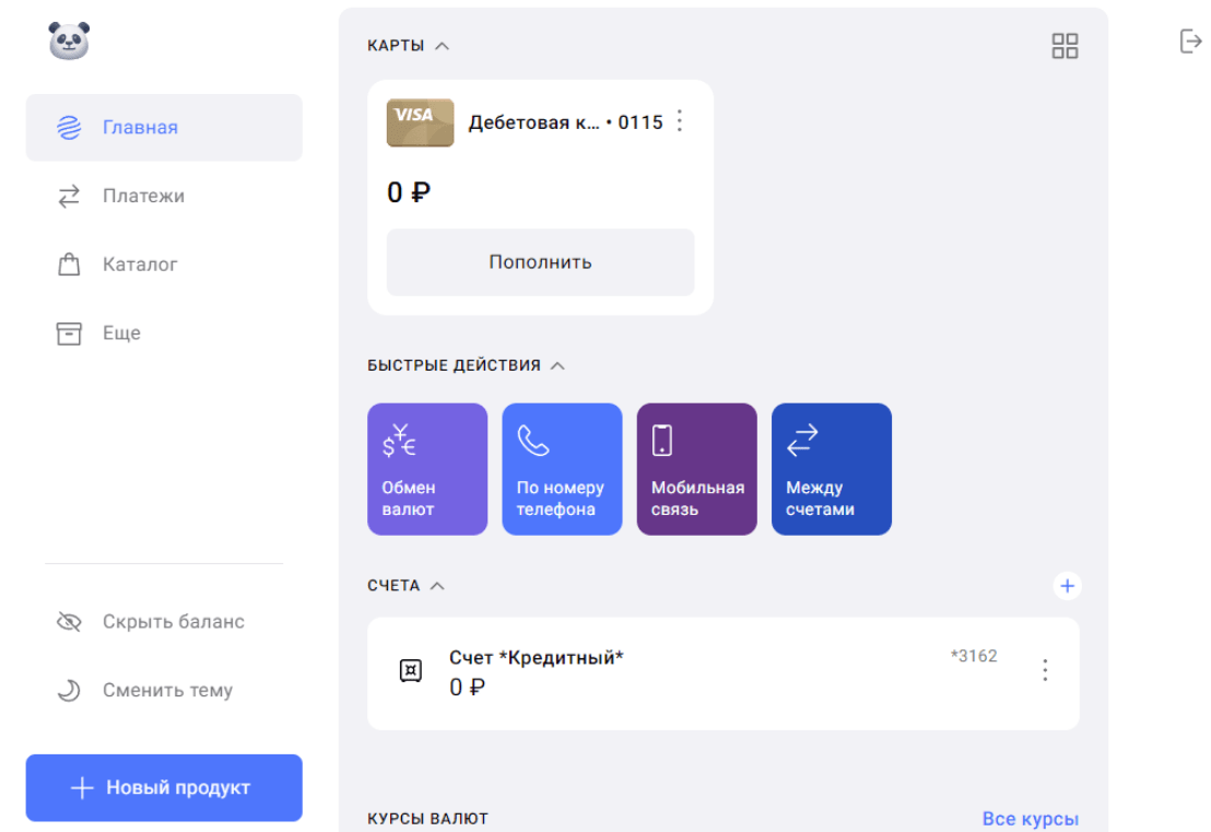 - Просмотр и выбор доступных банковский продуктов, подбор выгодных предложений
