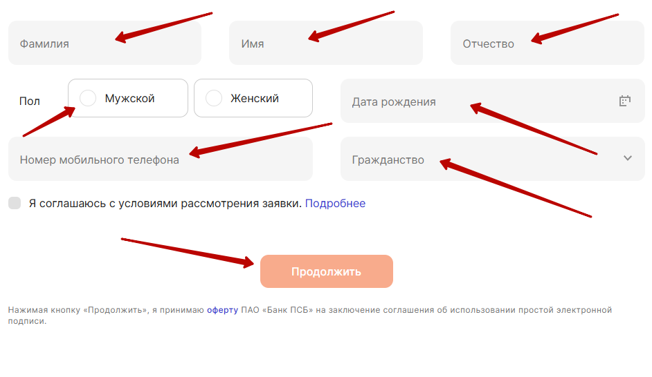 Для создания профиля на сайте необходимо перейти на страницу ib.psbank.ru. Ввести номер действующего счета, а также телефонный номер, указанный в договоре банковского обслуживания. На него будет отправлено SMS с подтверждением операции.