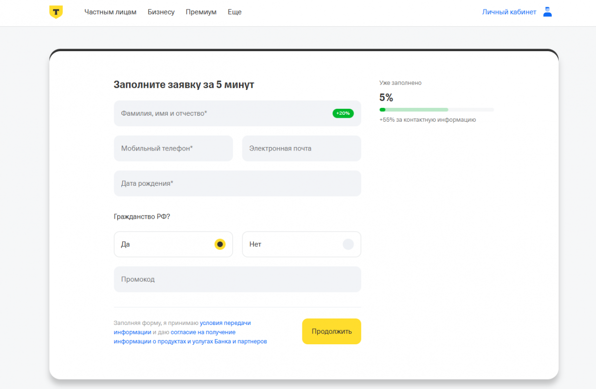 Т-Банк сотрудничает с гражданами РФ от 18 лет, у которых есть регистрация в одном из регионов страны. Для подачи заявки требуются только данные паспорта, адрес электронной почты и действующий номер телефона. Виртуальная карта доступна сразу после подачи заявки, доставка пластика с физическим носителем занимает от 1 до 3 дней.