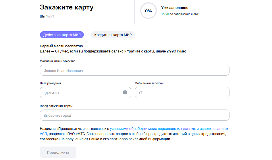 - Ознакомьтесь с условиями выпуска и обслуживания