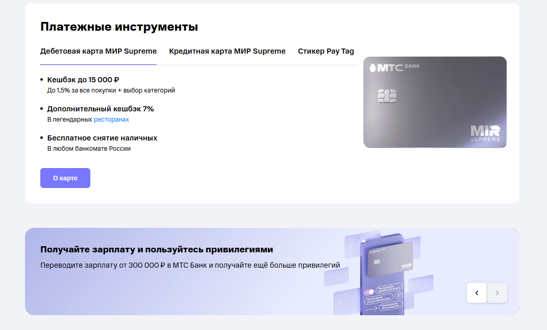 Дебетовая карта МИР Supreme МТС Банка МТС Банка