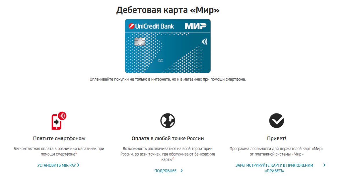 Дебетовая карта Мир ЮниКредит Банка