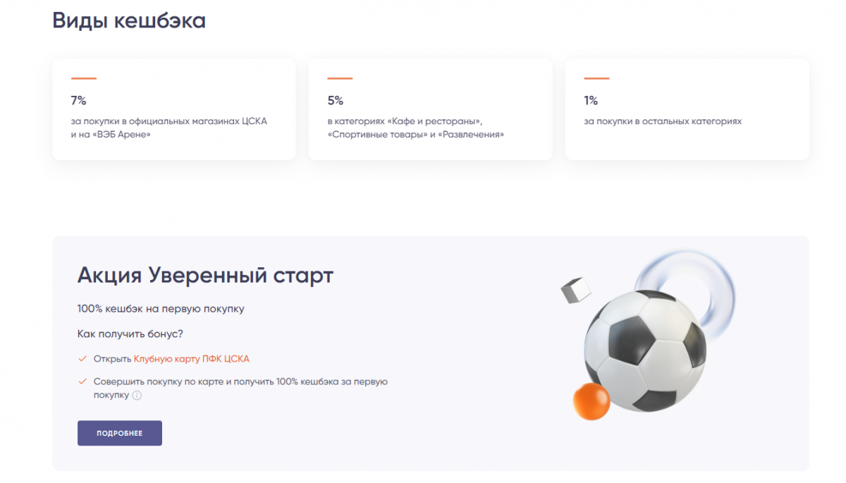 - 7% - возвращается при оплате покупок в магазинах ЦСКА, на стадионе «ВЭБ Арена»