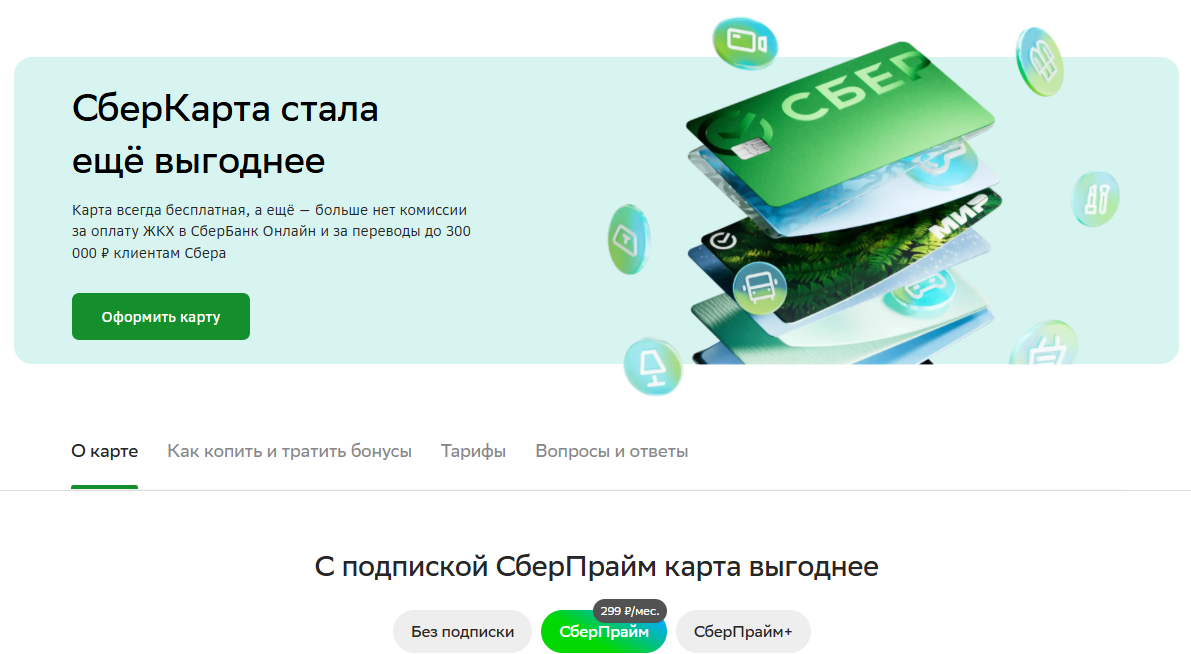 Сберкарта от СберБанка предназначена для безналичной оплаты товаров и услуг, снятия средств и хранения личных денег на балансе. За покупки начисляются бонусы, которые могут достигать 30% суммы в чеке. В конце каждого месяца проводится анализ трат, на его основании принимается решение о стоимости обслуживания (0 или 150 рублей в месяц), количестве полученных баллов, лимитах на бесплатное снятие наличных, стоимости уведомлений. Для выпуска доступны только карты платежных систем МИР.