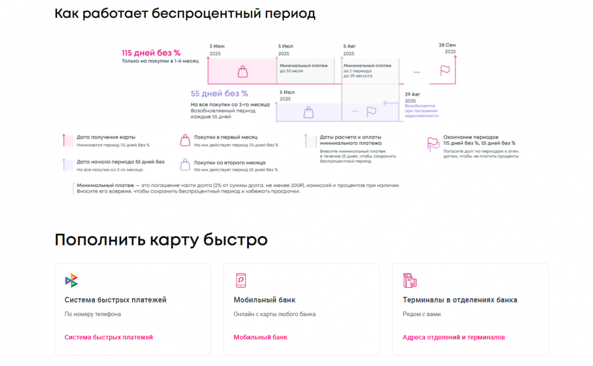 | Процентная ставка | 0% в льготный период, далее от 53,9% |