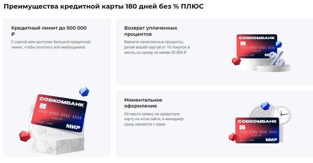 Кредитная карта 180 дней без процентов Плюс от Совкомбанка