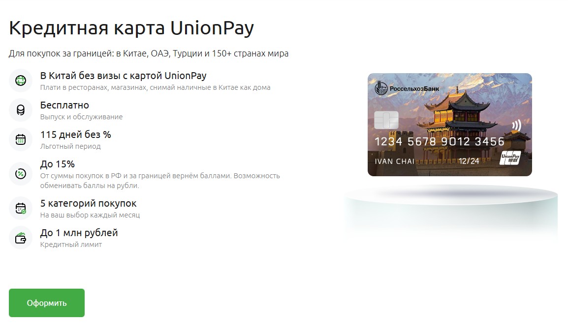Кредитная карта «Своя UnionPay» Россельхозбанка