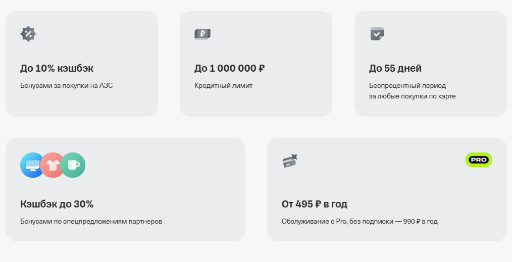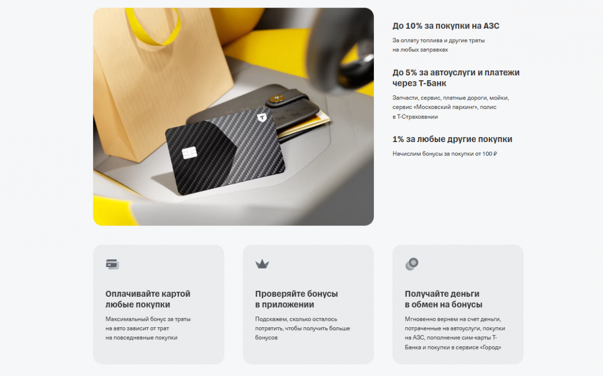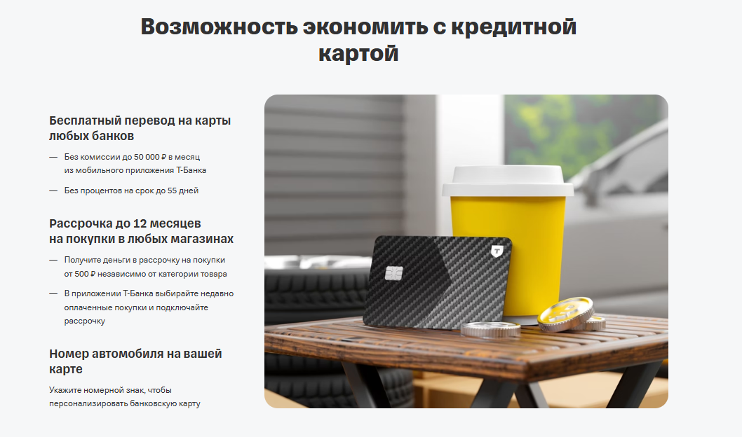 Кредитная карта Т-Банка Drive для автомобилистов выпускается с максимальным кредитным лимитом в 1 миллион рублей. Карта подходит для ежедневных трат, а также для расчетов на АЗС и автомагазинах. В рамках тарифа действует льготный период 55 дней, есть возможность оформить рассрочку на год без переплат. За покупки автотоваров начисляется повышенный кэшбэк бонусами в размере 10%.