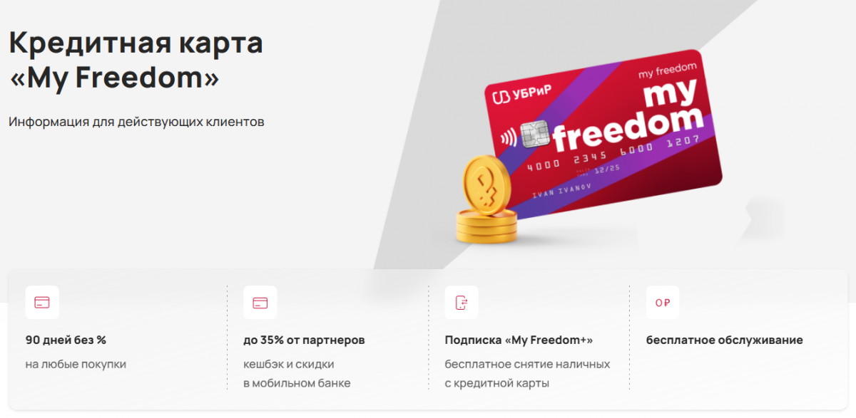 Кредитная карта «My Freedom» от УБРиР позволяет в течение 120 дней не оплачивать проценты по договору. Бесплатное обслуживание кредитки при совершении покупок на сумму не менее 10000 рублей в месяц. Заказать карту можно в отделениях банка, на официальном сайте УБРИР и по телефону горячей линии. Бесплатная доставка осуществляется во все регионы РФ.