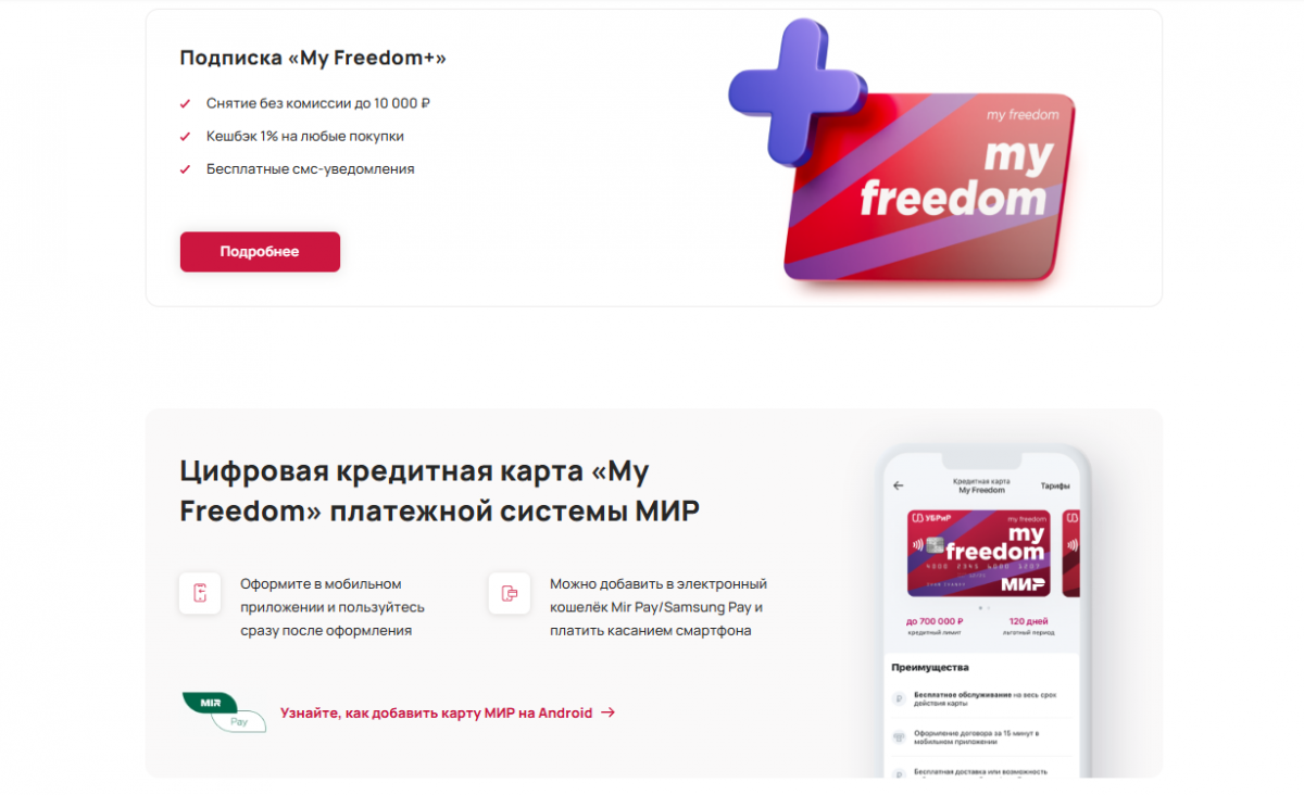 Получить кредитную карту «My Freedom» могут граждане РФ от 19 до 75 лет с постоянной регистрацией в регионе РФ. Среди других обязательных требований: