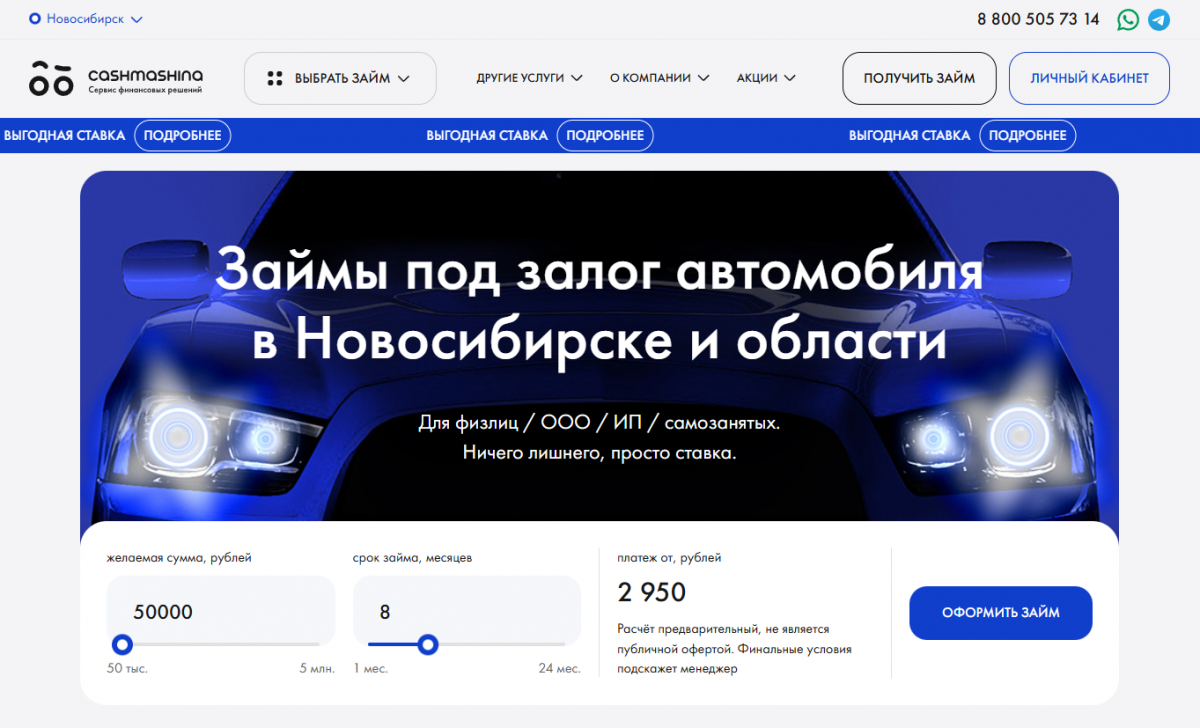 Микрофинансовая компания Кэш Машина предлагает займы под залог авто в Новосибирске и Владивостоке. Компания работает от лица ООО «АСТФ», внесенного в государственный реестр под № 2003550009526 в 2020 году, состоит в профильной СРО «Микрофинансовый альянс «Институты развития малого и среднего бизнеса»». Получить деньги можно без справок и поручителей, здесь есть тарифы для физлиц, самозанятых, бизнеса.