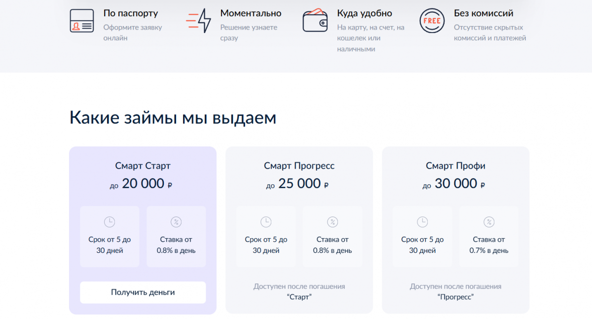 В микрофинансовой организации Кредиттер можно получить деньги в долг по ежедневной ставке от 0,6% до 0,8% (ПСК до 292,000% годовых) на срок от 1 до 6 месяцев. При первом обращении лимит займа ограничен до 20000 рублей, при повторном доступны суммы до 80000 рублей. В компании разработано несколько тарифов, перейти на следующий уровень могут только добросовестные клиенты, не имеющие просрочек. Начисление процентов происходит только за фактические дни пользования деньгами. В случае возникновения просрочки МФО предлагает заключить договор о пролонгации займа, услуга предоставляется бесплатно на срок до 30 дней.