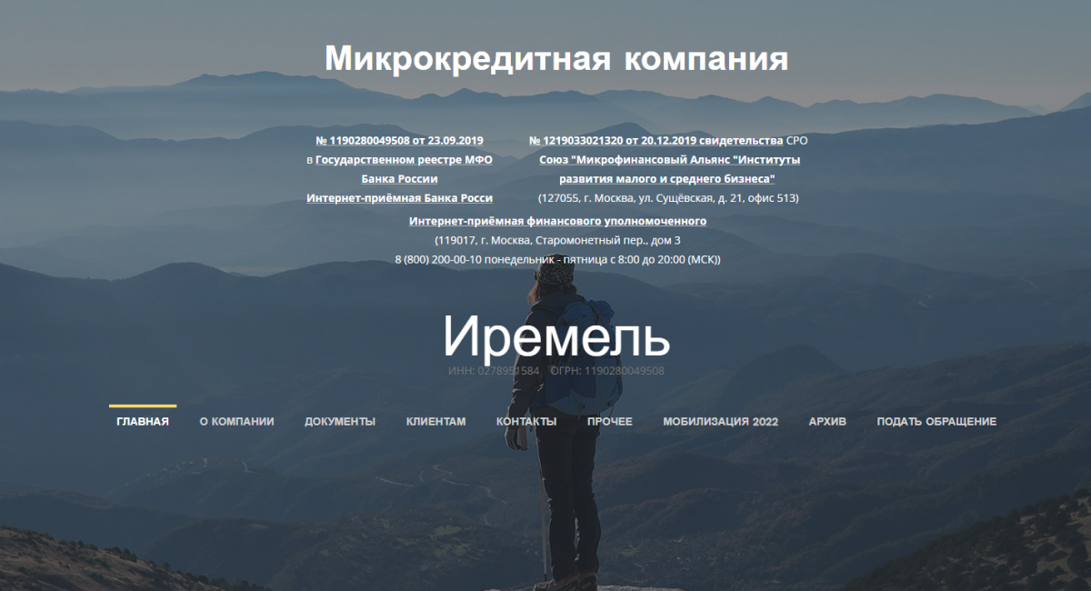 Компания Иремель осуществляет выдачу займов наличными жителям Республики Башкортостан без обеспечения и на длительный срок. Микрофинансовая организация состоит в реестре ЦБ РФ под №1903380009419 от 23.09.2019 года и является членом СРО «Союз Микрофинансовый Альянс».