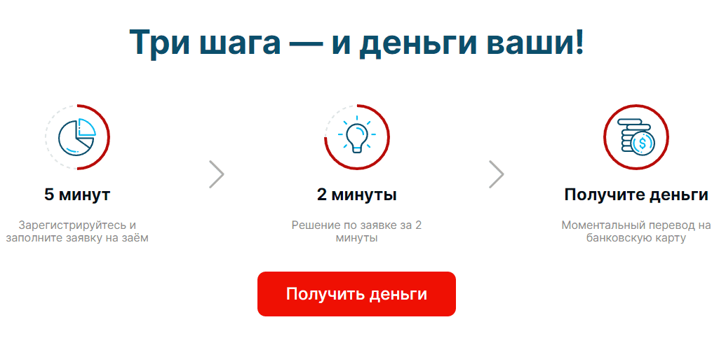 Физические лица могут рассчитывать на сумму от 5000 до 30.000 рублей на срок от 5 до 30 дней. Процентная ставка фиксированная для всех категорий заёмщиков – 0,8% в день или 292,000% годовых. При первом обращении срок использования микрозайма ограничен – всего 15 дней. Деньги выдаются круглосуточно, служба поддержки реагирует на обращения с 8:00 до 20:00 по московскому времени. Для клиентов, оказавшихся в сложной финансовой ситуации предусмотрена реструктуризация долга.