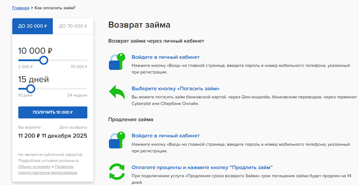 - В разделе «Мой займ» rkbrybnt «Погасить займ»