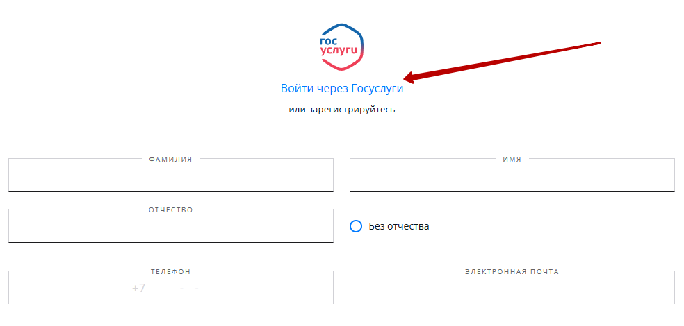 - Откройте форму авторизации и нажмите «Войти через Госуслуги»