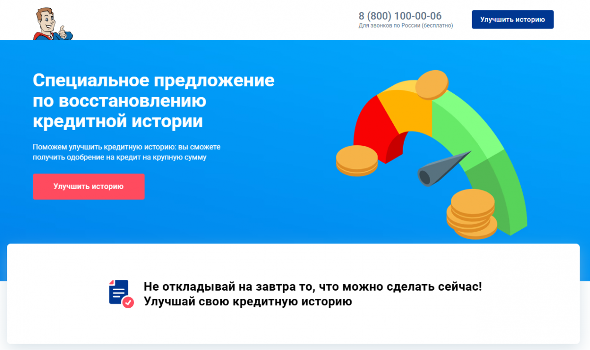 Если у вас плохая кредитная история и вы планируете совершать в будущем крупные покупки, то мы рекомендуем воспользоваться программой «Кредитный доктор» от Совкомбанка. За 9 месяцев безупречного выполнения условий тарифного плана, ваша кредитная история гарантированно получит положительный статус, что сделает вас надежным заёмщиком в глазах любой кредитной организации.