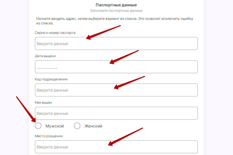 - Укажите данные в анкете (ФИО, дату рождения, e-mail, паспортные данные, сведения о регистрации, месте проживания, работы, о среднемесячном доходе)