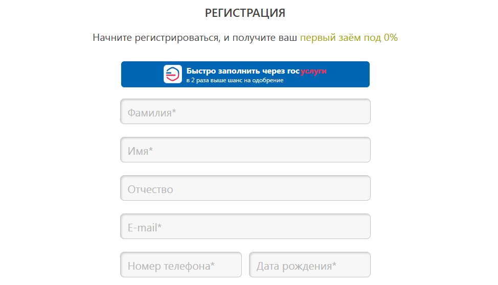 - Первый займ без процентов