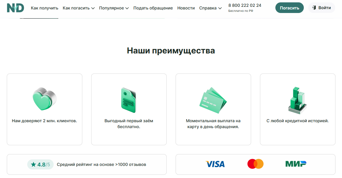 Условия онлайн займов в Надо Денег