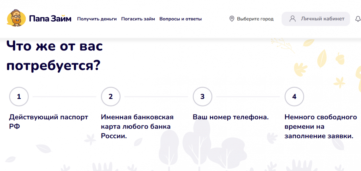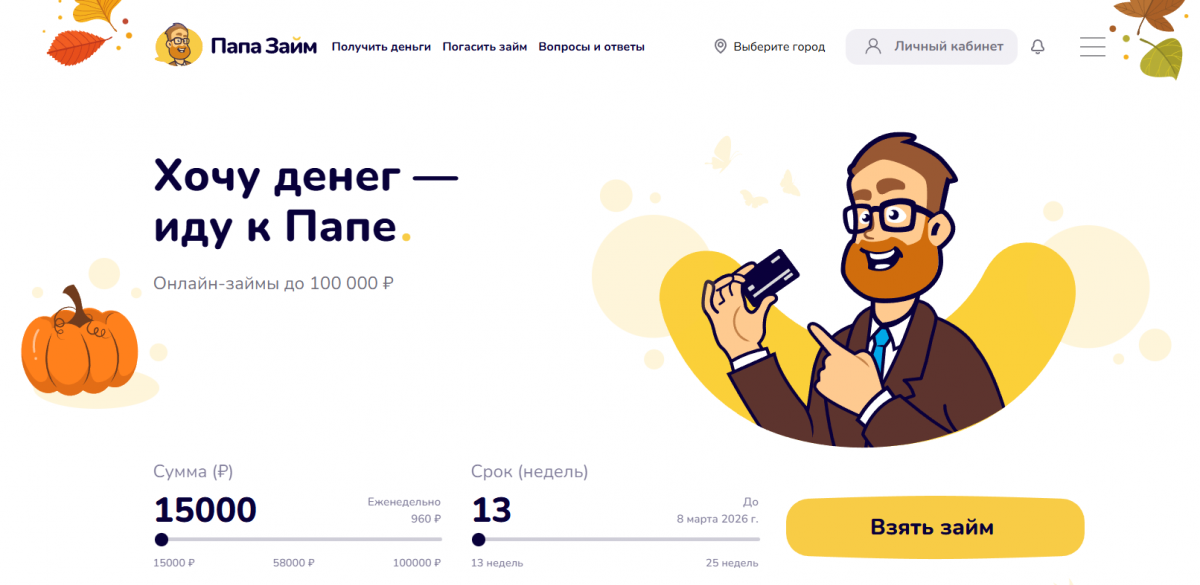 МФО Папа Займ круглосуточно выдает микрозаймы физическим лицам без отказа с любой кредитной историей. Компания зарегистрирована в реестре ЦБ РФ от 23.07.2019 года и осуществляет свою деятельность на основании государственной лицензии. Деньги переводятся на именные банковские карты Visa, MasterCard, МИР с положительным балансом на счету.