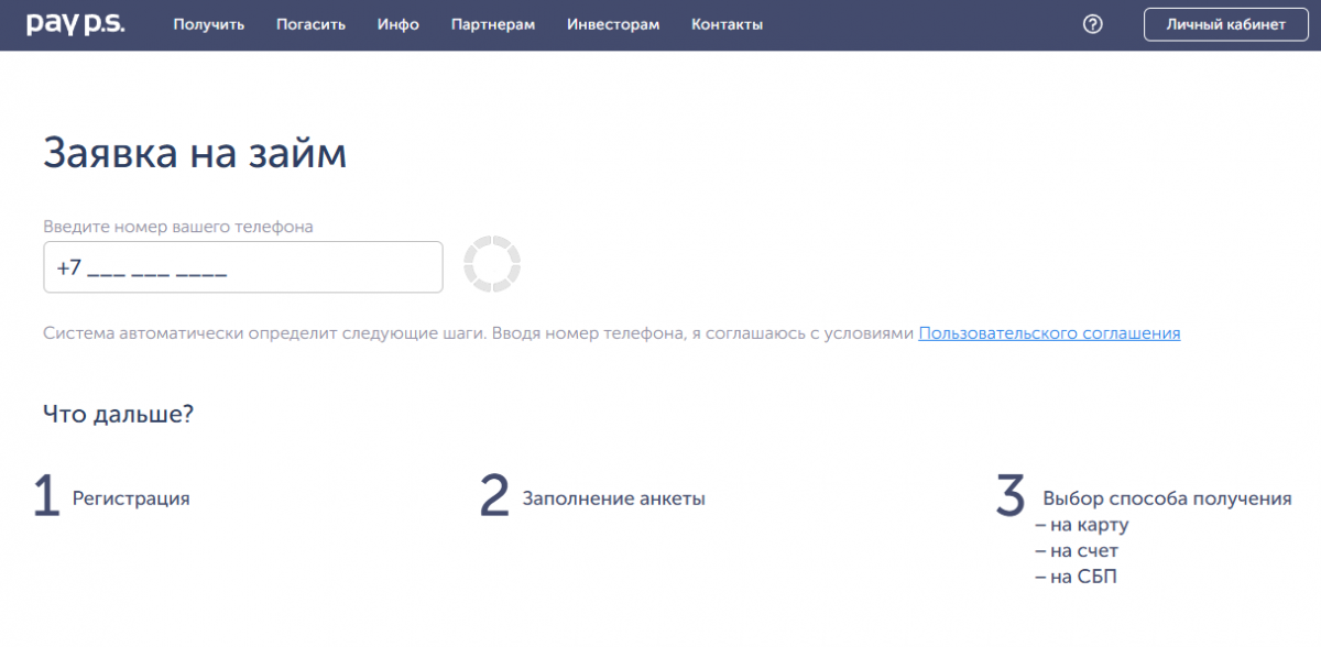 - Нажмите на кнопку «Оформить заявку» и перейдите на сайт: payps.ru