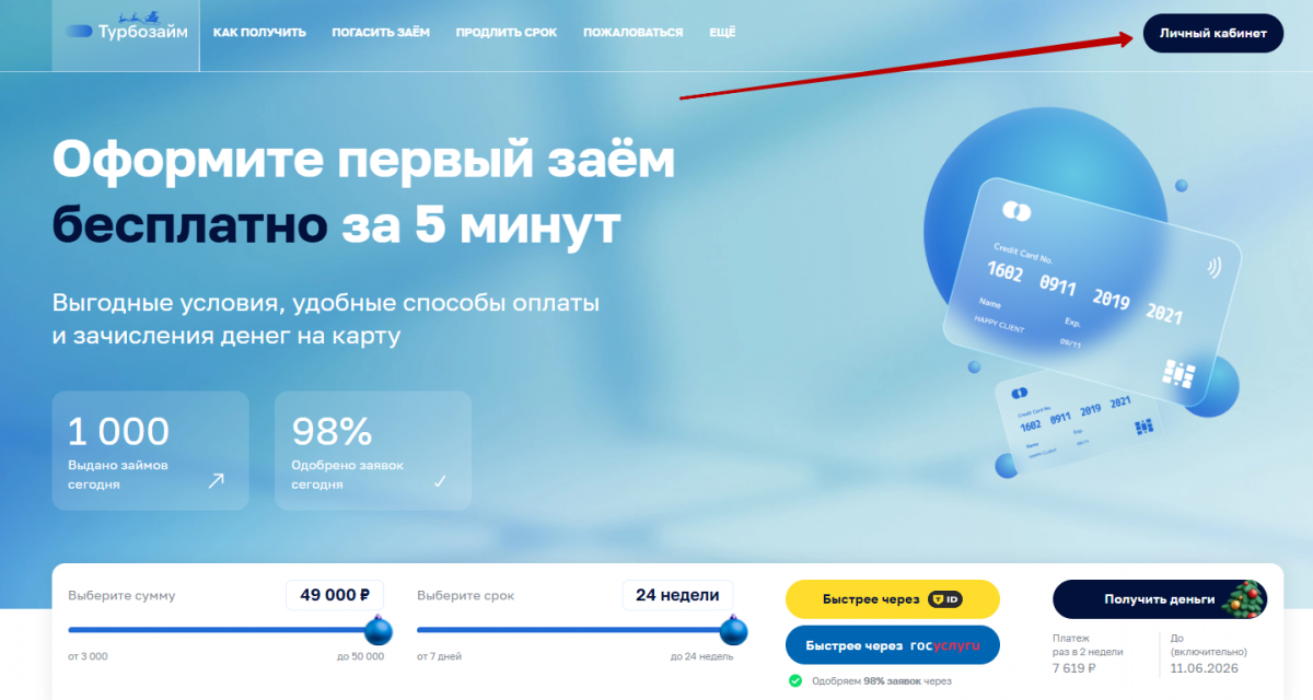Личный кабинет Турбозайм