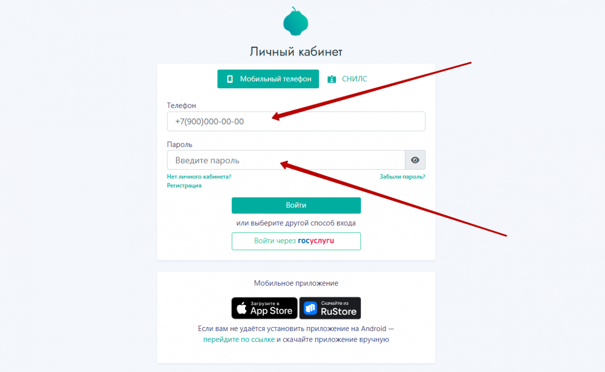 На официальном сайте МФО ВД Платинум vdplatinum.ru кликните кнопку в правом верхнем углу «Личный кабинет». Авторизоваться в учетной записи можно по номеру мобильного телефона или СНИЛС, поэтому выберите соответствующую вкладку. В поле формы впишите зарегистрированный телефонный номер и пароль. После ввода данных нажмите «Войти».