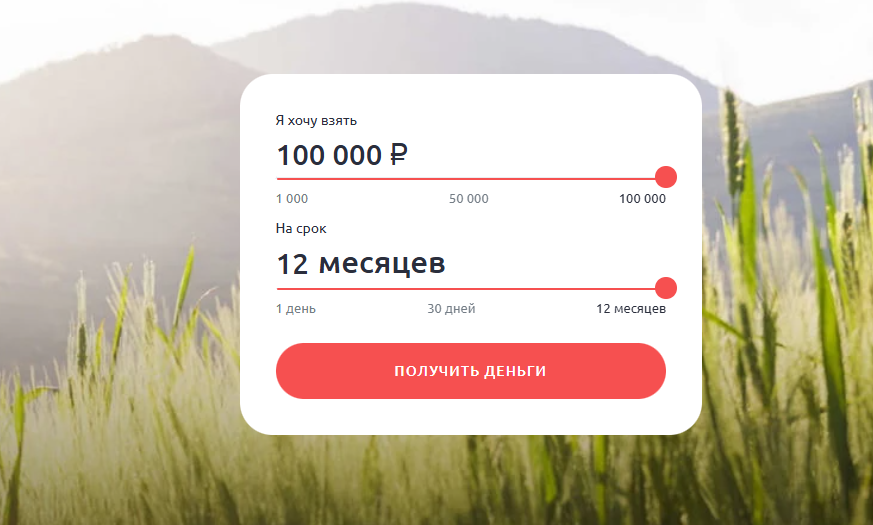 Сумма Срок Одобрение 2000 - 20 000 ₽ 10 - 365 дней 41% Ставка ПСК Возраст 0 - 0,8% в день 0 - 292,000% в год 19 - 70 лет Повторно Время Продление 4000 - 100 000 ₽ 1 минута Да - 0%