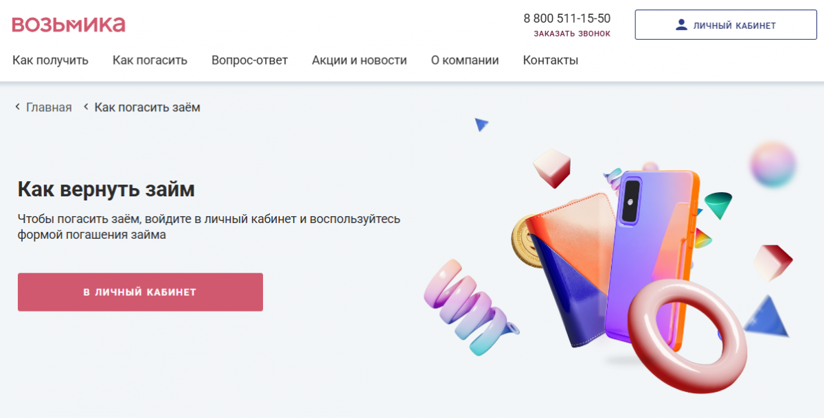 Как оплатить займ в Возьмика