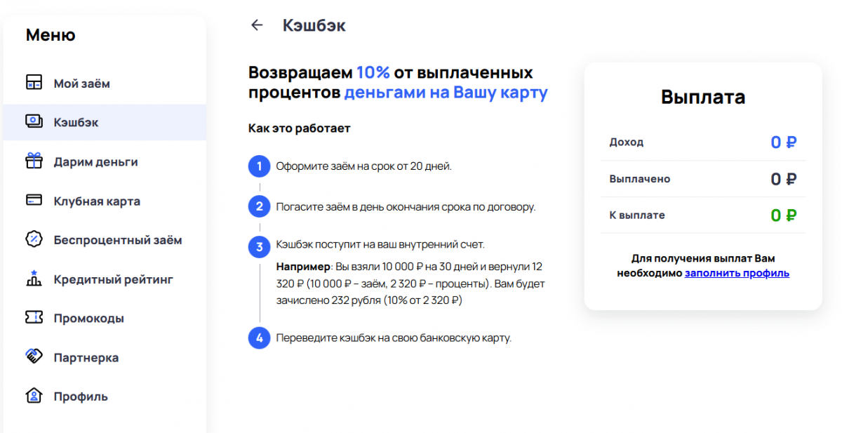 Личный кабинет Заём.ру