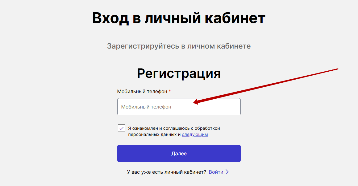Авторизация клиента осуществляется через кнопку «Личный кабинет» из верхнего меню. После ее нажатия откроется форма входа, куда нужно вписать номер телефона и пароль, придуманный при регистрации. Затем кликнуть на «Войти» и дождаться идентификации в системе.