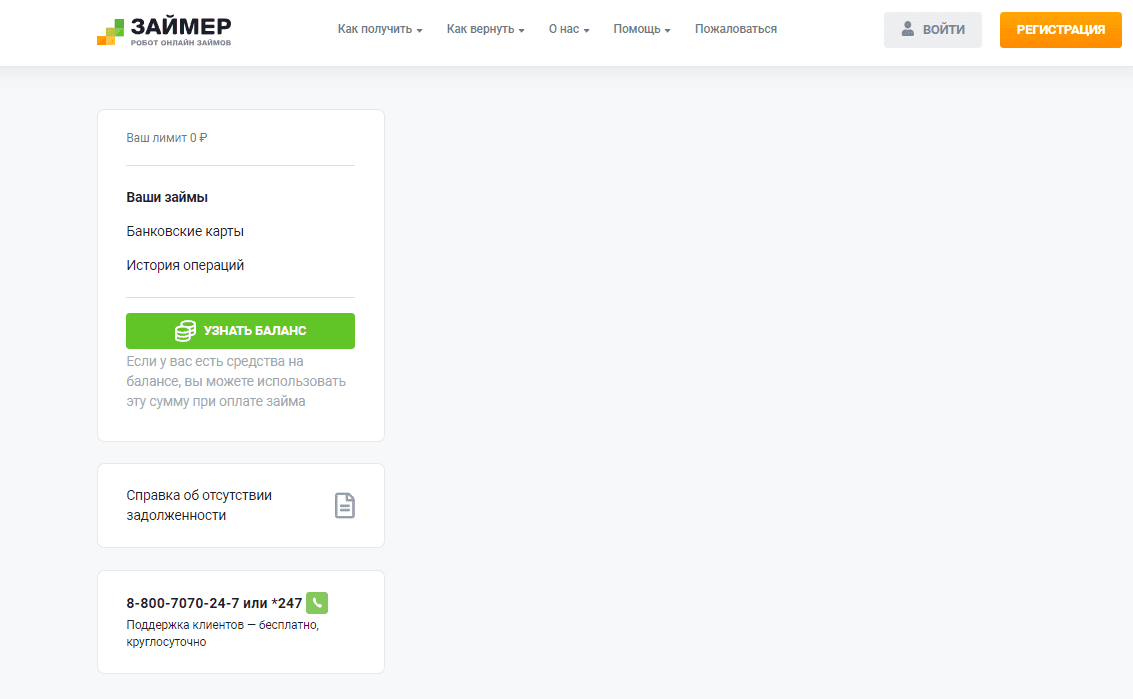 После регистрации на сайте zaymer.ru каждому заемщику становятся доступны: