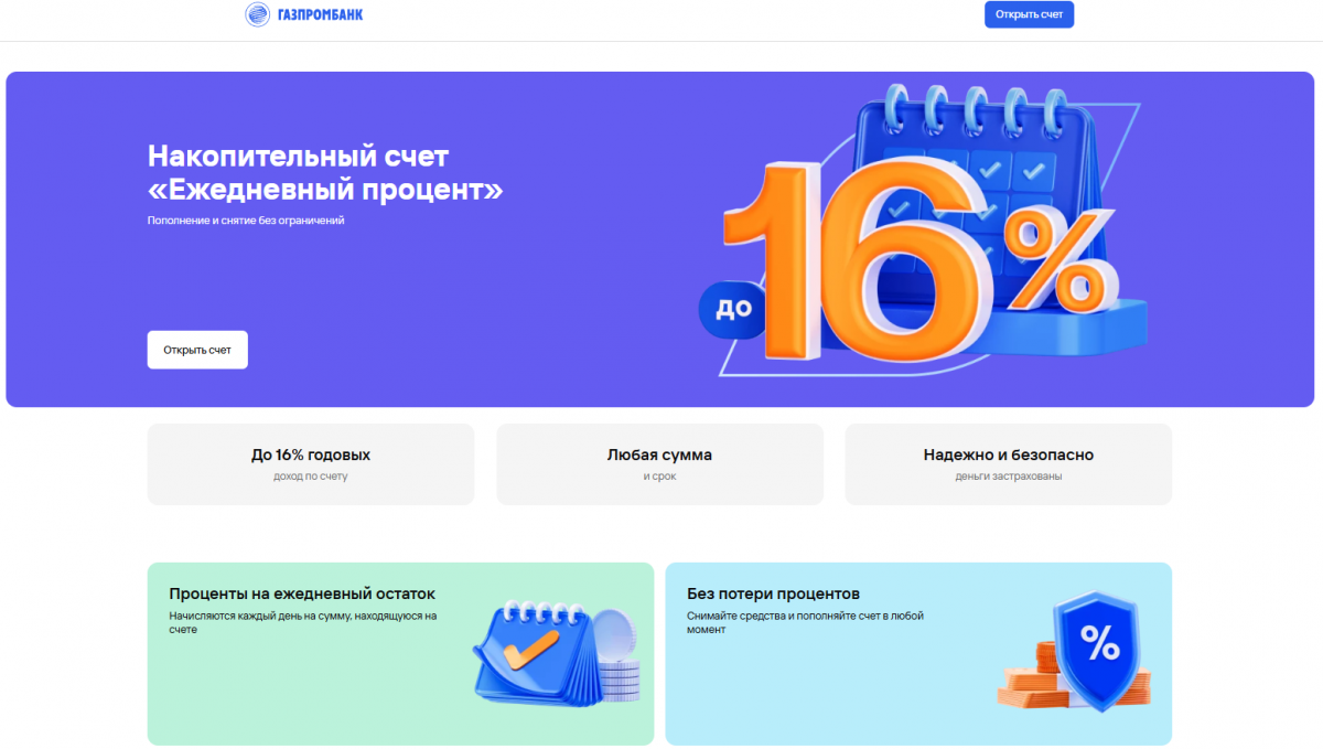 Преимущества счета «Ежедневный процент» Газпромбанка