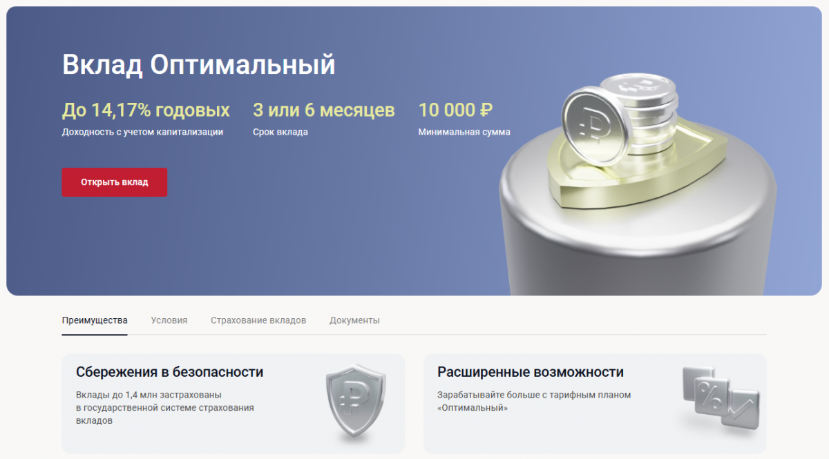 Условия по депозиту «Оптимальный»