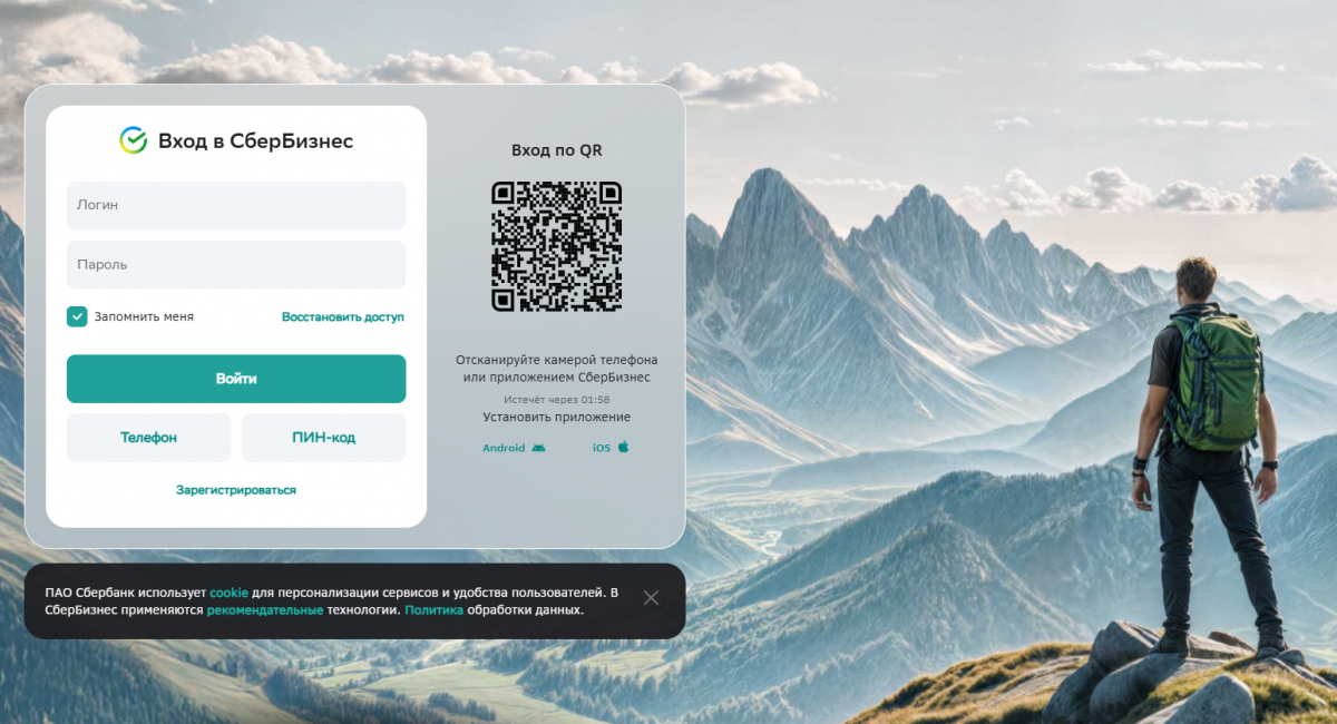 Вход в личный кабинет для бизнеса в СберБанке возможен по номеру телефона или QR-коду. Для этого отсканируйте QR-код камерой телефона на сайте или в мобильном приложении.